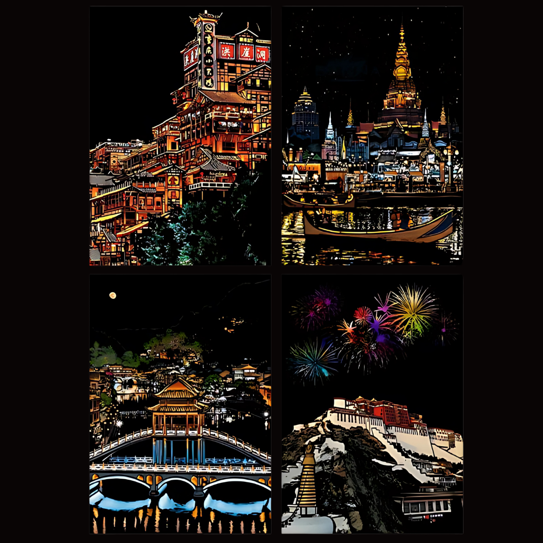 šĀ All-inclusive set -Ā A set of fourĀ Ā 20Ā cm x 14 cm boards, a scraper, a stylus and a cleaning brush.